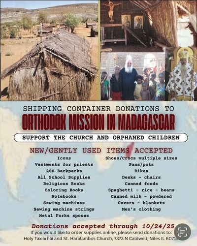 Niles, IL – September 23, 2025 – Holy Taxiarhai and St. Haralambos Greek Orthodox Church is organizing a shipping container donation drive to support the Orthodox Christian Mission in Madagascar, serving both the local Church and orphaned children in need.